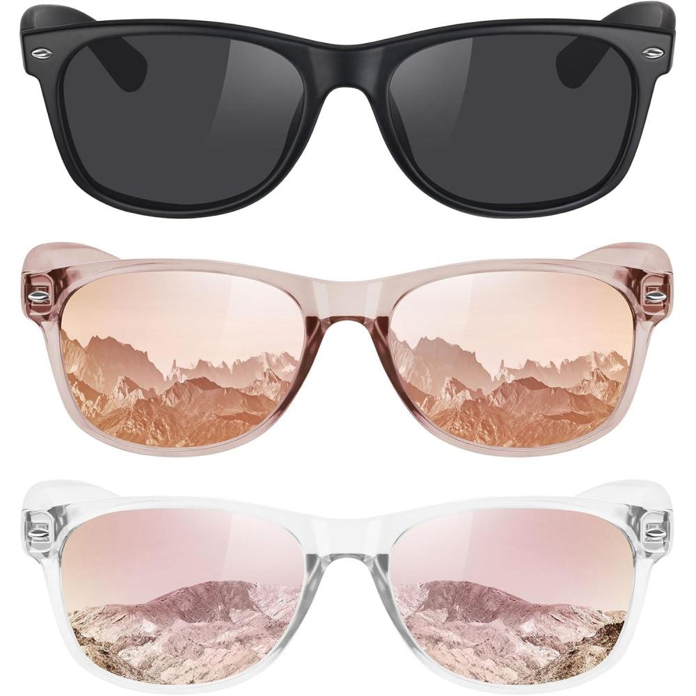 MEETSUN Classic Polarized Sunglasses for Women Men Trendy Retro Sun Glasses for Driving UV Protection (3 Pack)((3 Pack) Black/Gold Mirrored/Pink Mirrored)