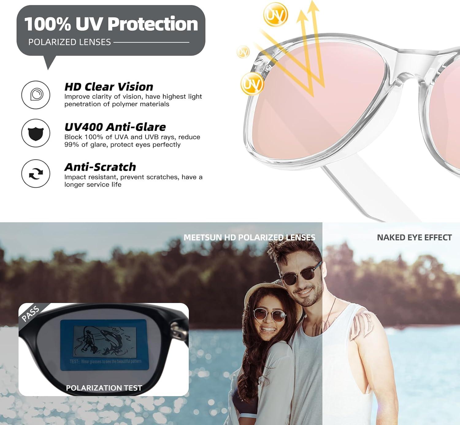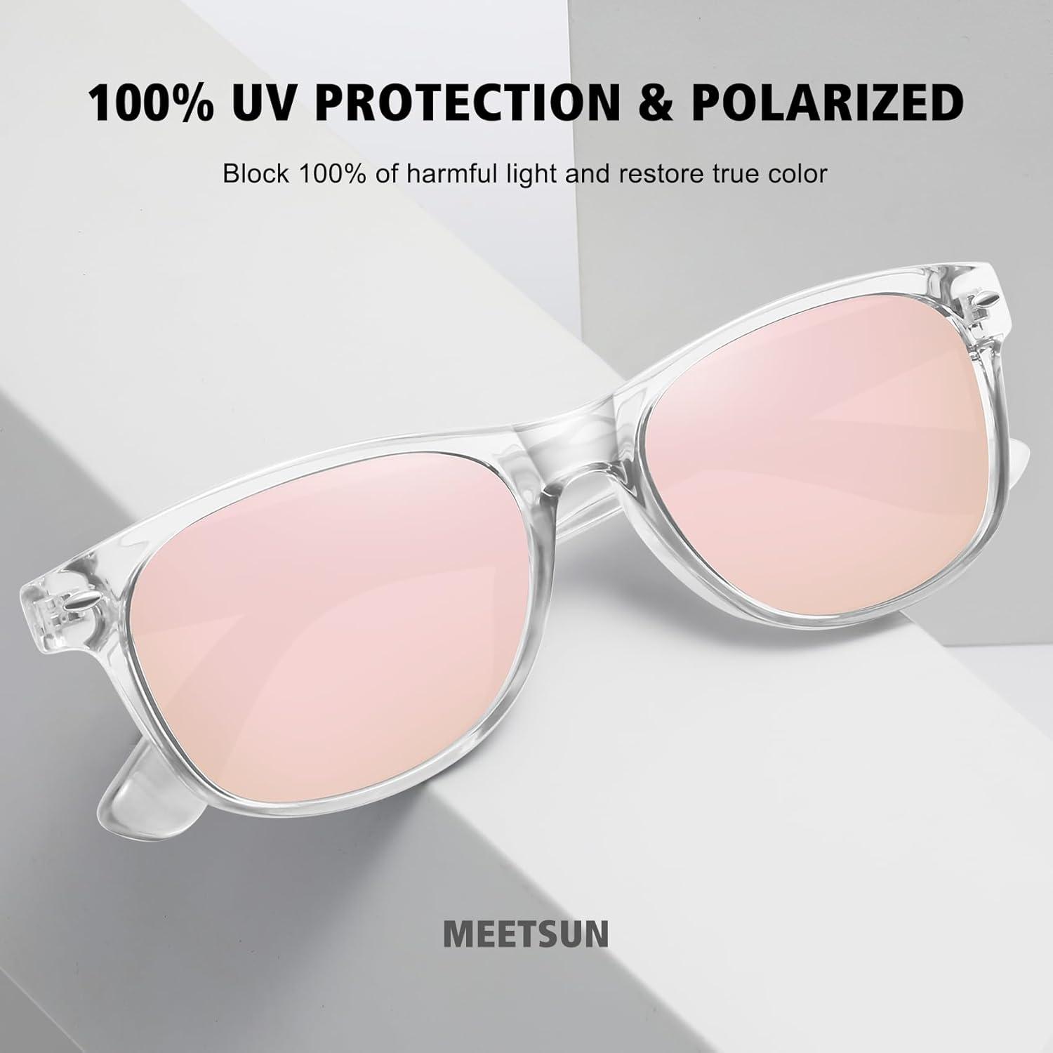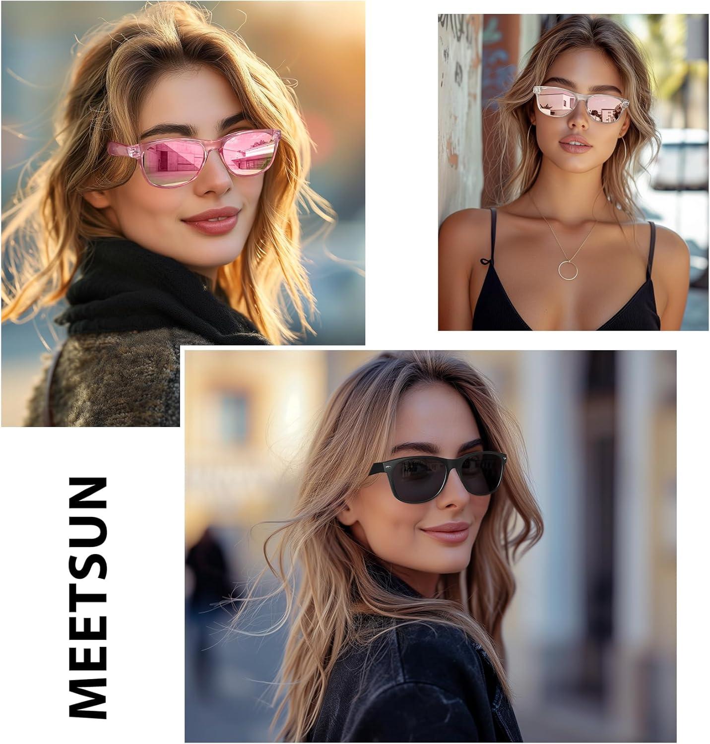 MEETSUN Classic Polarized Sunglasses for Women Men Trendy Retro Sun Glasses for Driving UV Protection (3 Pack)((3 Pack) Black/Gold Mirrored/Pink Mirrored)