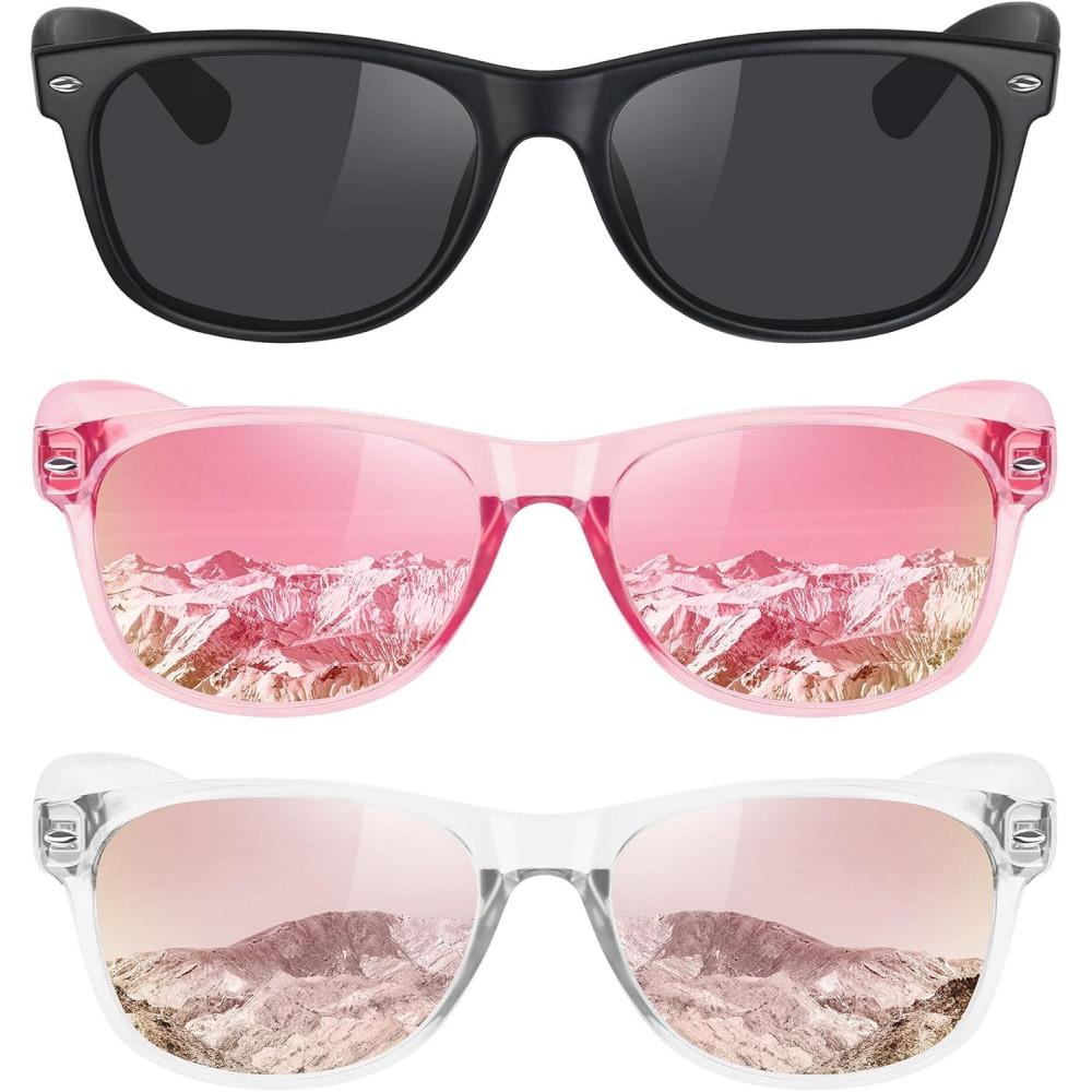 MEETSUN Classic Polarized Sunglasses for Women Men Trendy Retro Sun Glasses for Driving UV Protection (3 Pack)((3 Pack) Black/Purple Pink Mirrored/Pink Mirrored)