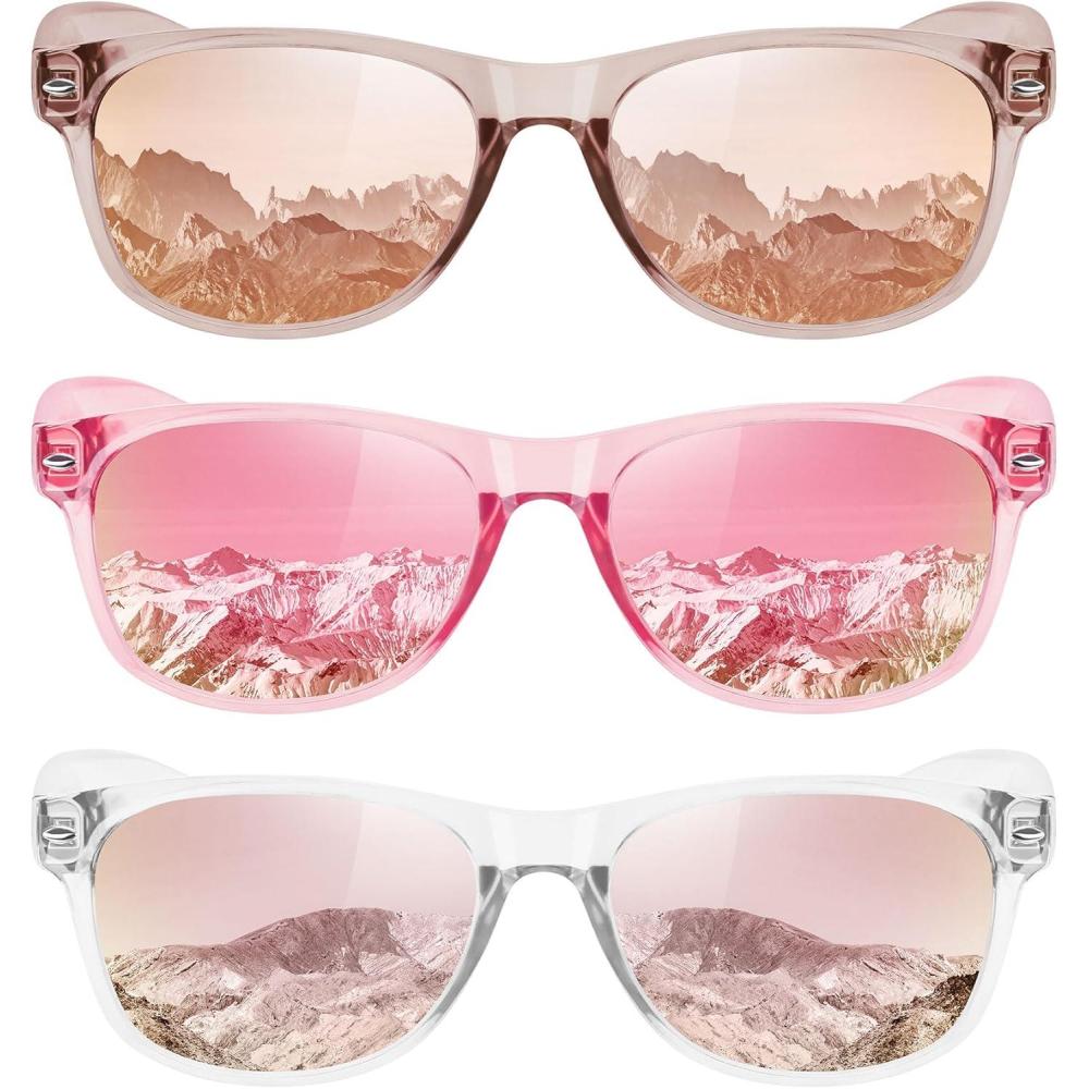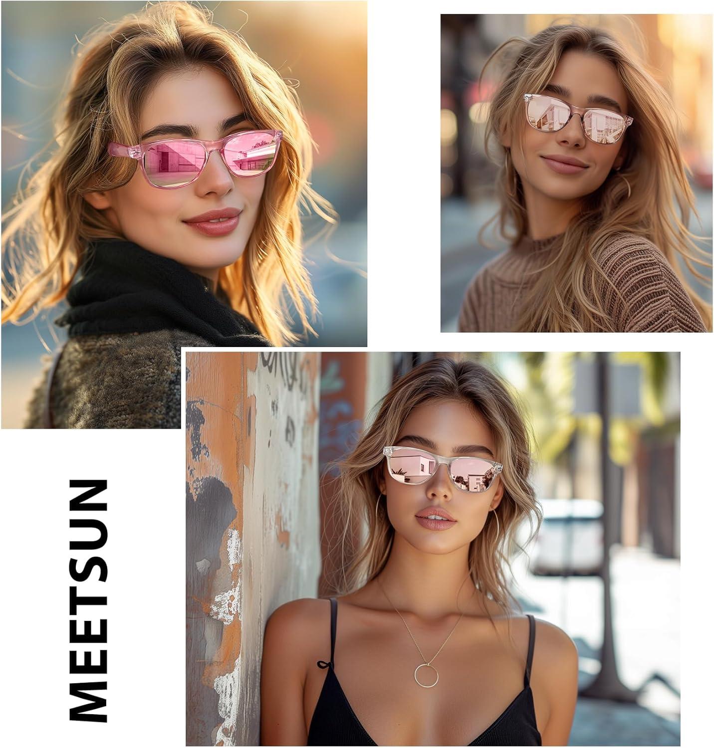 MEETSUN Classic Polarized Sunglasses for Women Men Trendy Retro Sun Glasses for Driving UV Protection (3 Pack)((3 Pack) Black/Purple Pink Mirrored/Pink Mirrored)
