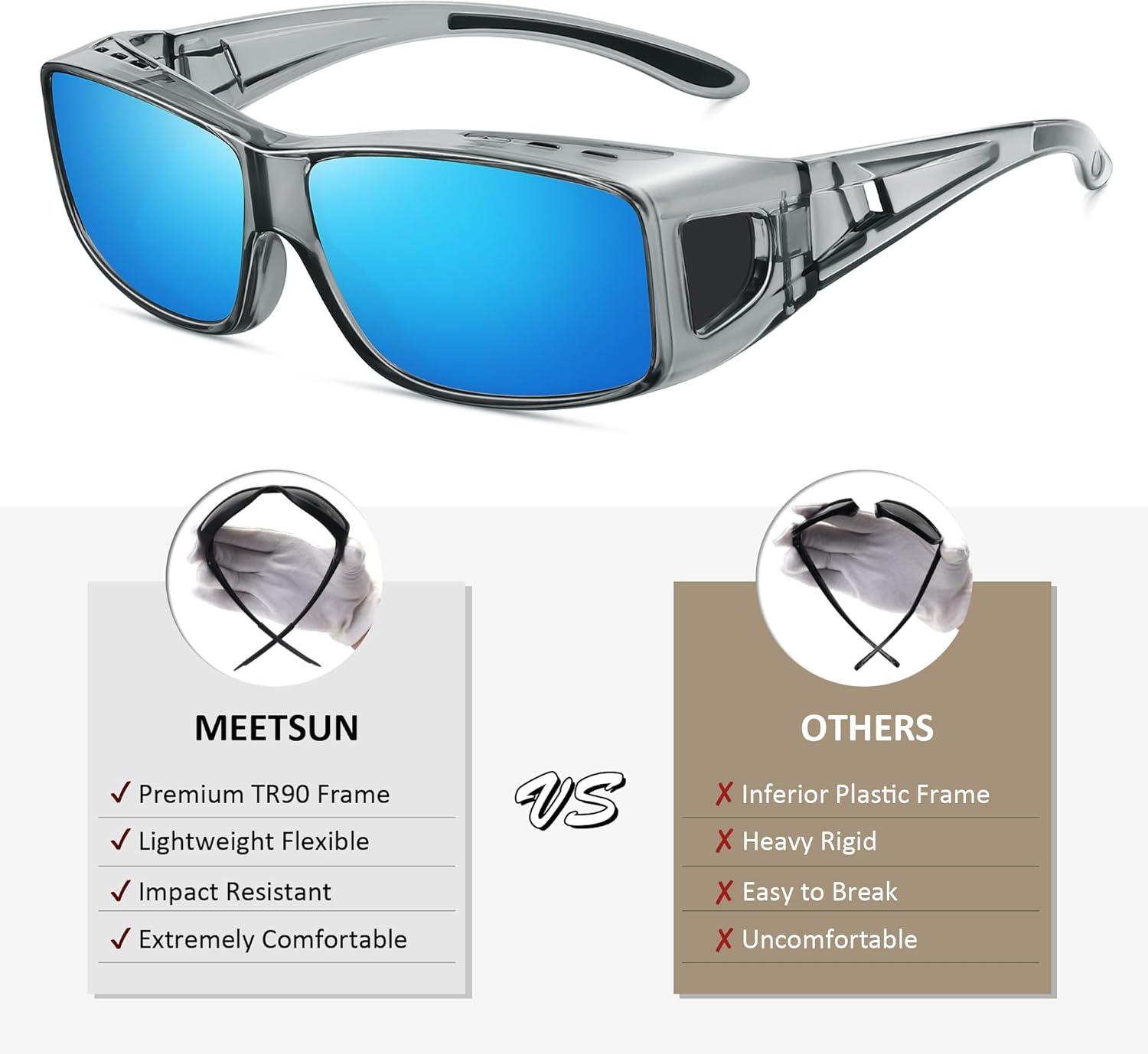 MEETSUN Fit Over Glasses Sunglasses for Men Women,Wrap Around Sunglasses Polarized UV400 Protection(A1-clear Gray Frame-blue Mirror Lens)