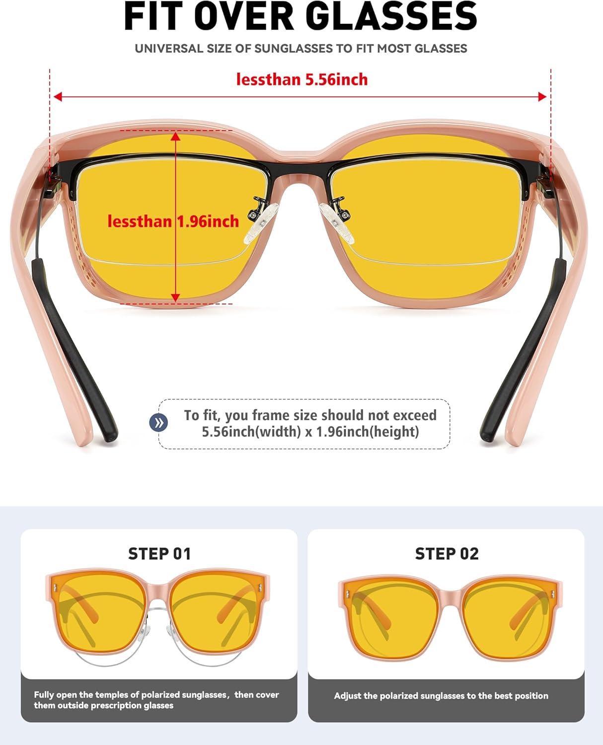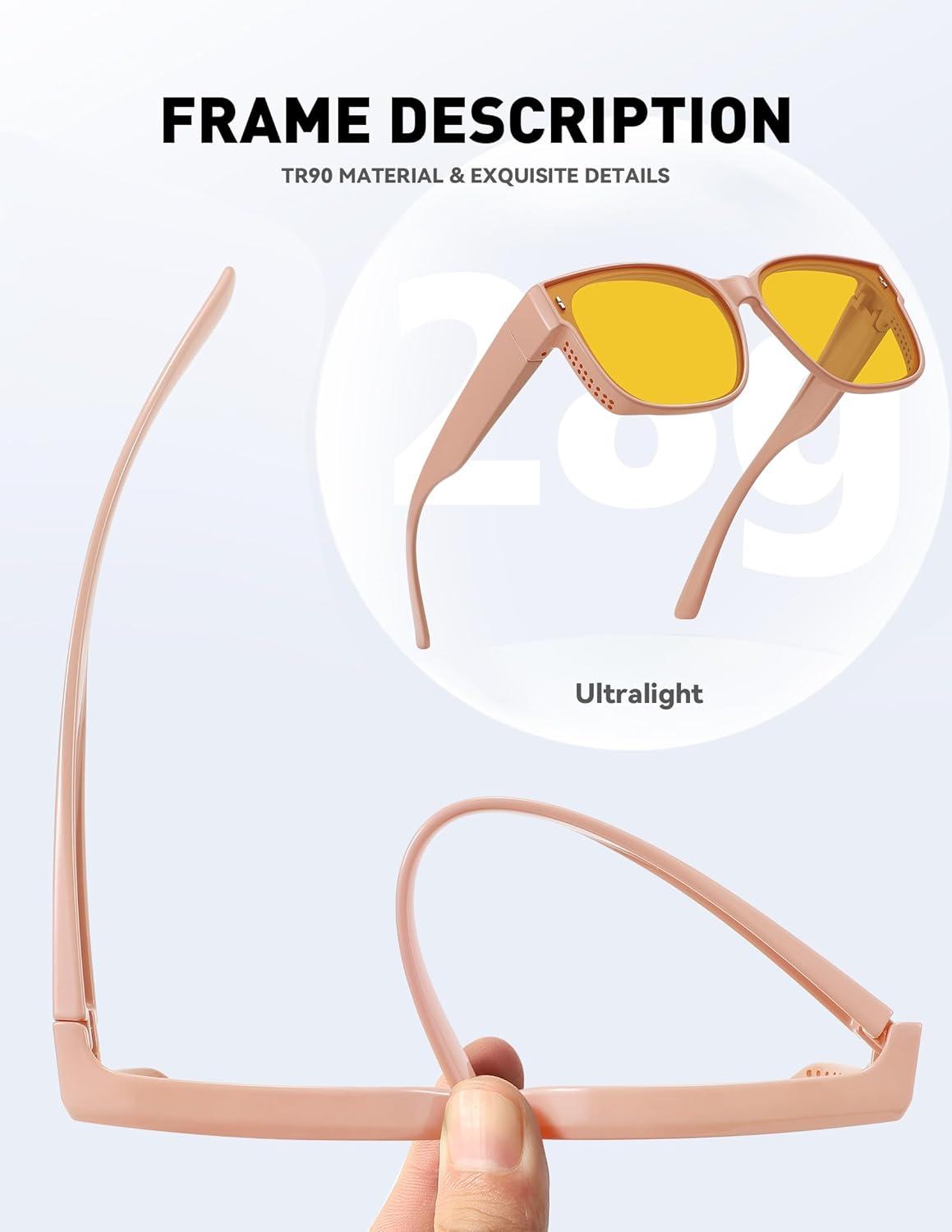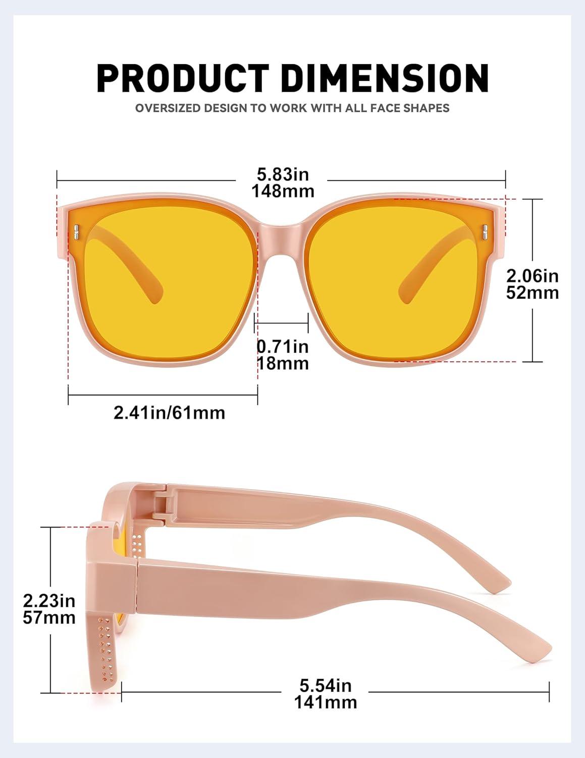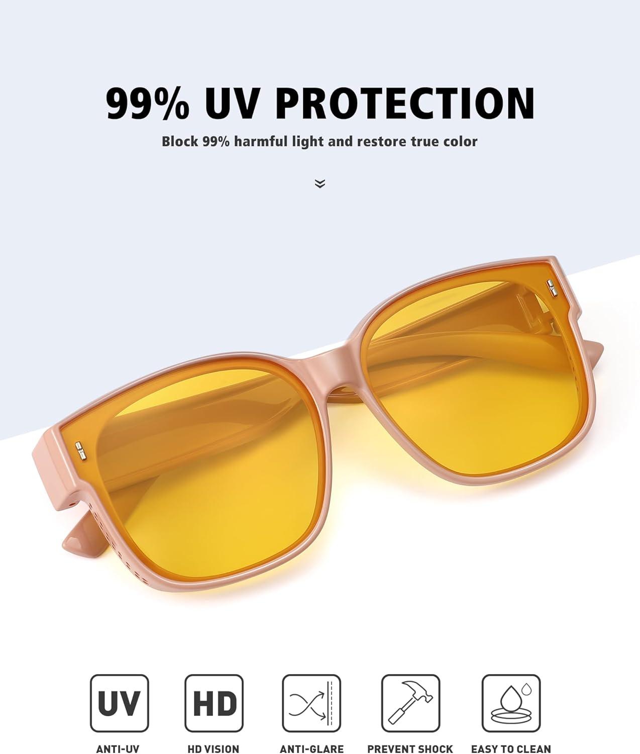MEETSUN Night Driving Glasses for Women Trendy Square Large Frame Fit Over Glasses Night Vision Sunglasses(Brown)