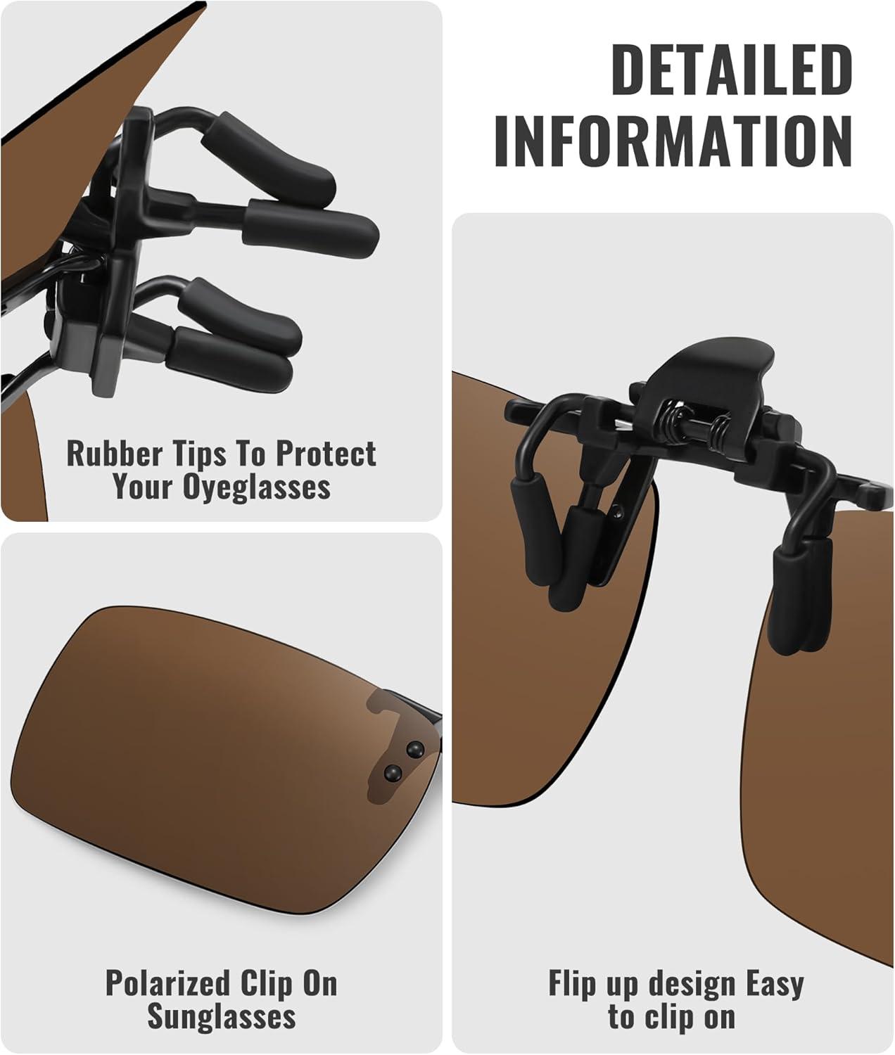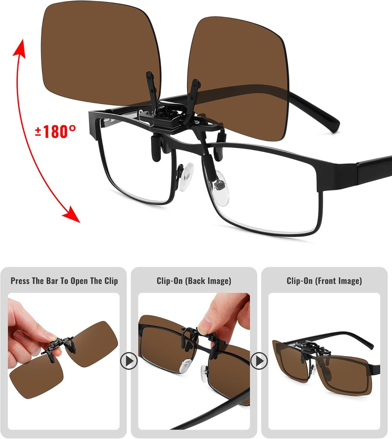 MEETSUN Polarized Clip On Sunglasses for Men Women Sports Fishing Driving Hiking Fit Over Prescription Glasses(5pack-black+blue+dark Green+brown+night Vision)