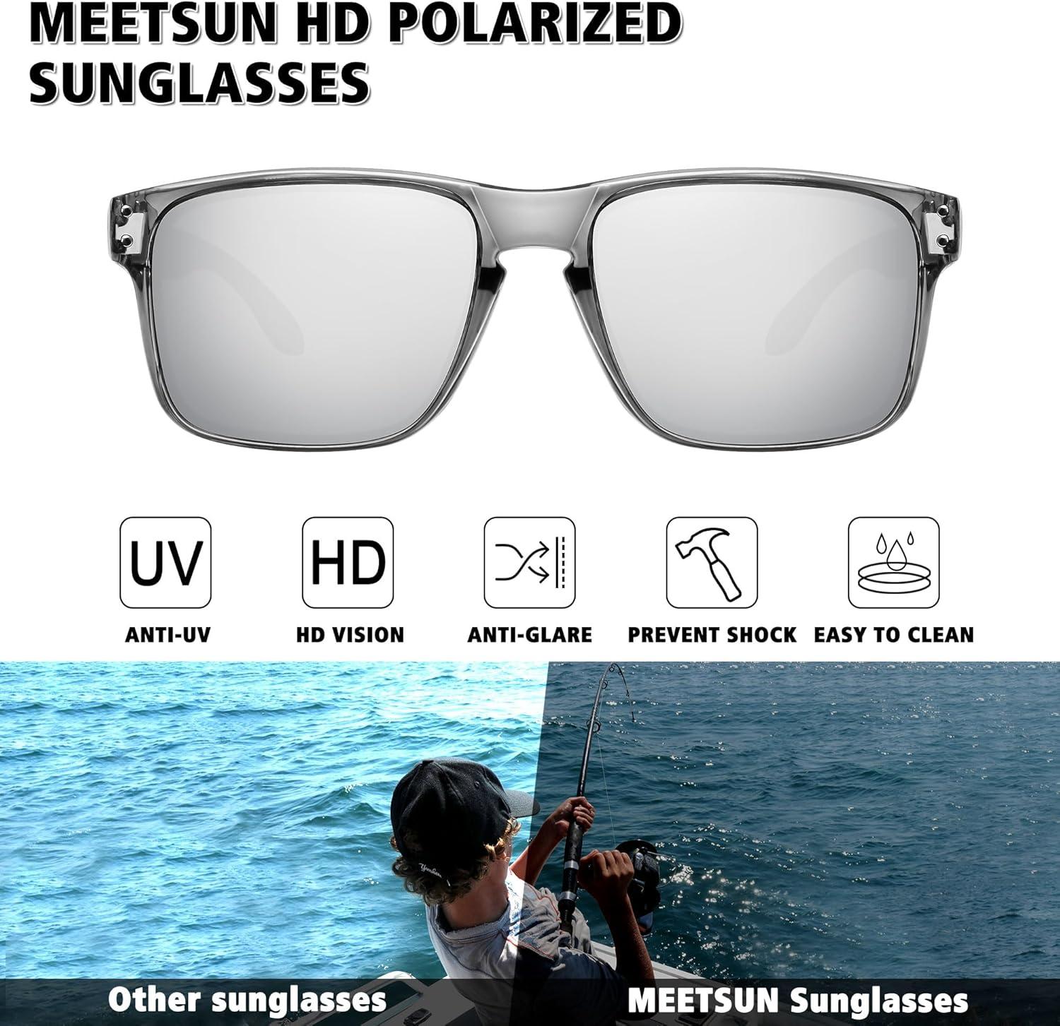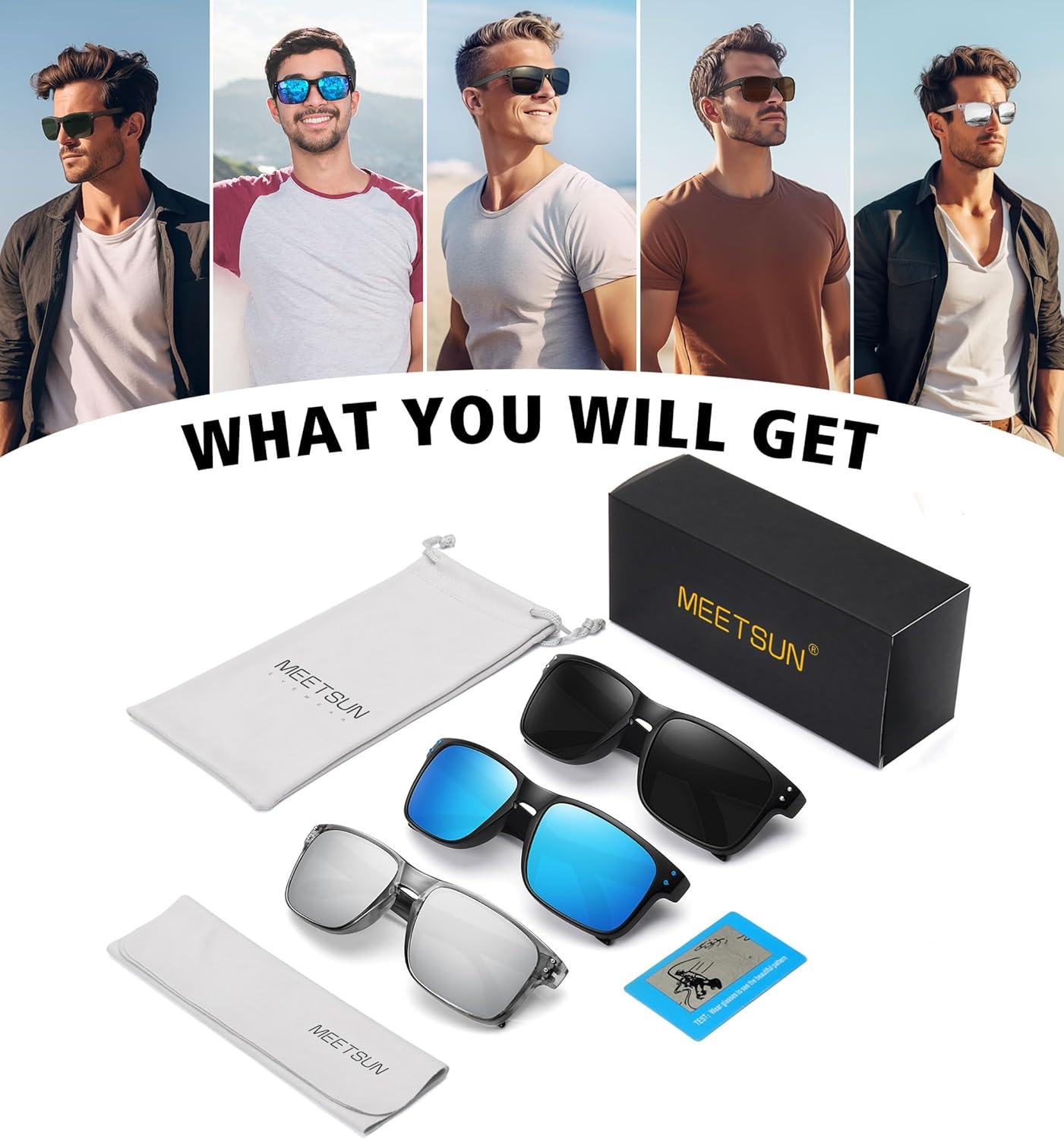 MEETSUN Polarized Sunglasses for Men Women Sports Driving Fishing Glasses UV400 Protection(3pack-black+blue+silver)