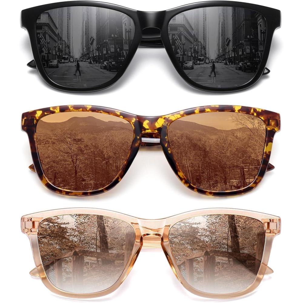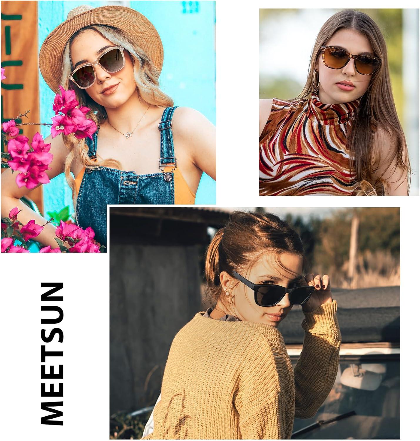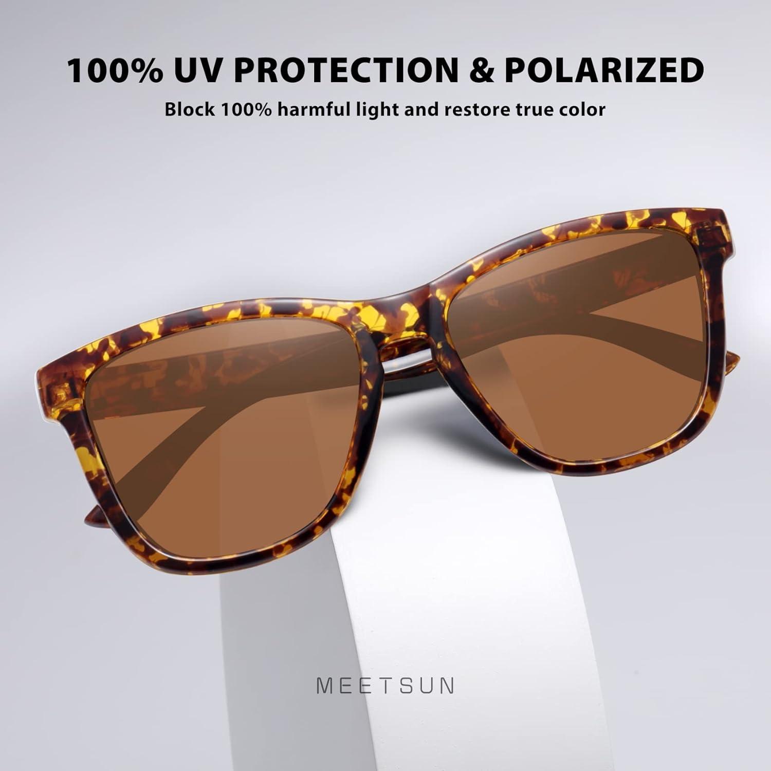 MEETSUN Polarized Sunglasses for Women Men Classic Retro Designer Style Fashion UV400 Protection(3 Pack Black + Light Brown + Tortoiseshell)